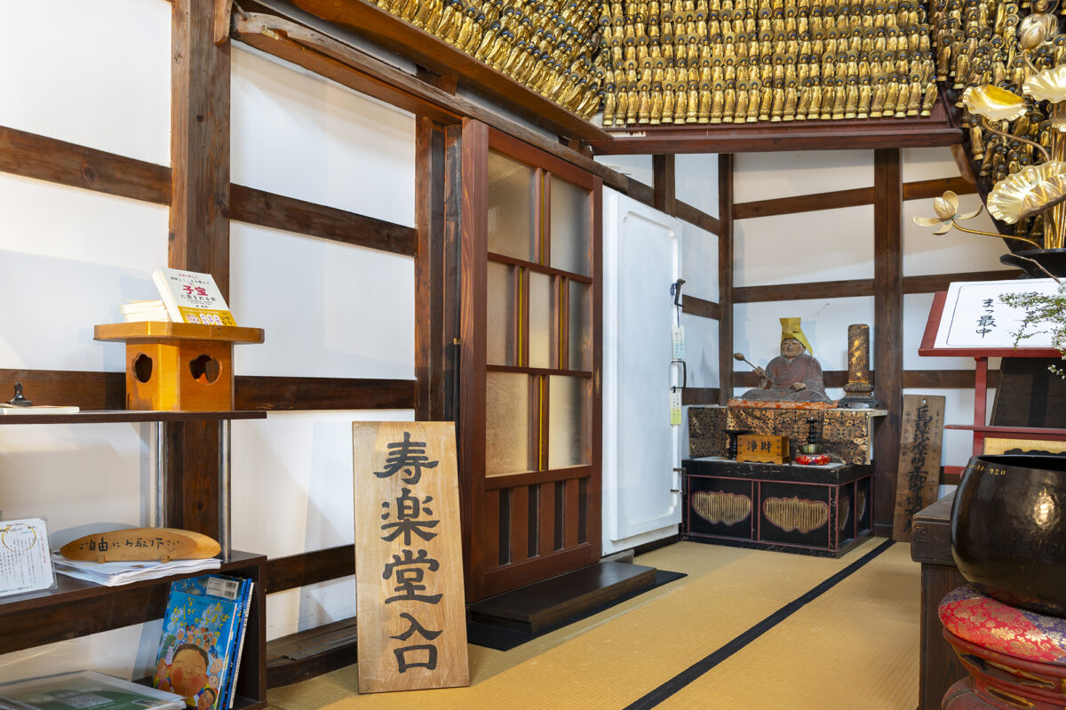 ②新湊大仏と千体佛を祀るお堂の玄関からお入りください。
