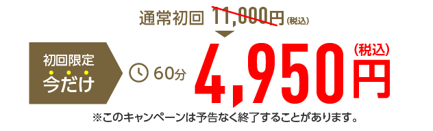 今回のリニューアルを記念して、初回施術を4,950円(税込)の特別価格にてご案内いたします。