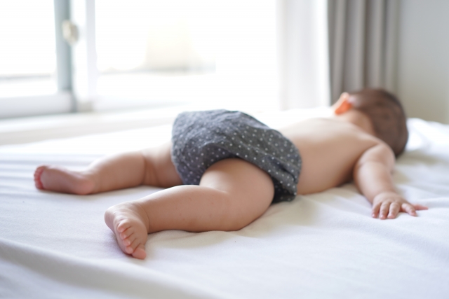 いつも同じ場所で仰向けにされていると、体を動かすきっかけが生まれにくくなります。興味を引くおもちゃや声かけが、寝返りの「やってみよう」というきっかけになることが多いです。