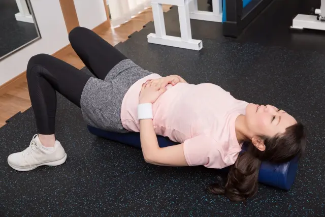 まず、ストレッチポールを床に縦に置き、その端にお尻を乗せる形でゆっくりと横になります。頭からお尻までがポールの上に乗るようにします。このとき、頭がポールからはみ出さないように注意してください。