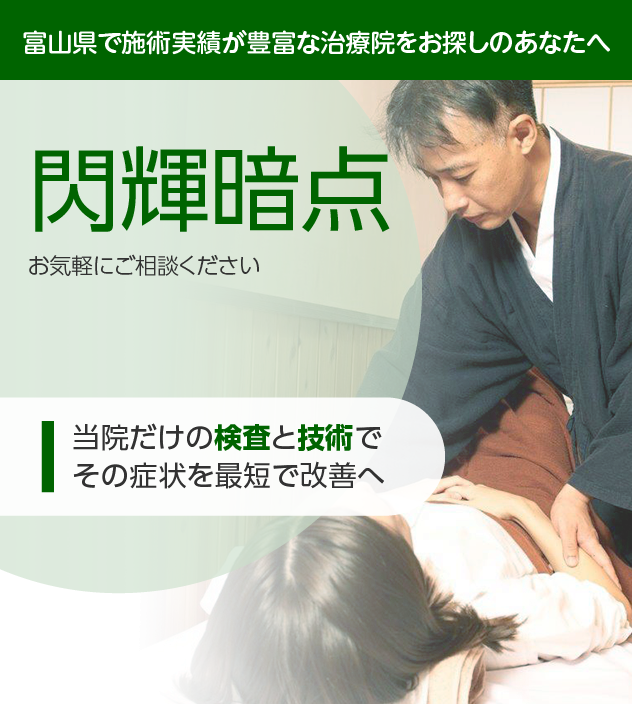 全国テレビでも紹介された、光山寺内の仏様に見守られた富山のパワースポットで施術を行っています。「開運治療」としてテレビや健康雑誌にも多数掲載されており、信頼と実績のある施術をぜひご体感ください。