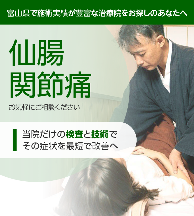仙腸関節痛でお悩みなら、充実した検査と豊富な施術実績を誇る当院にお任せください。