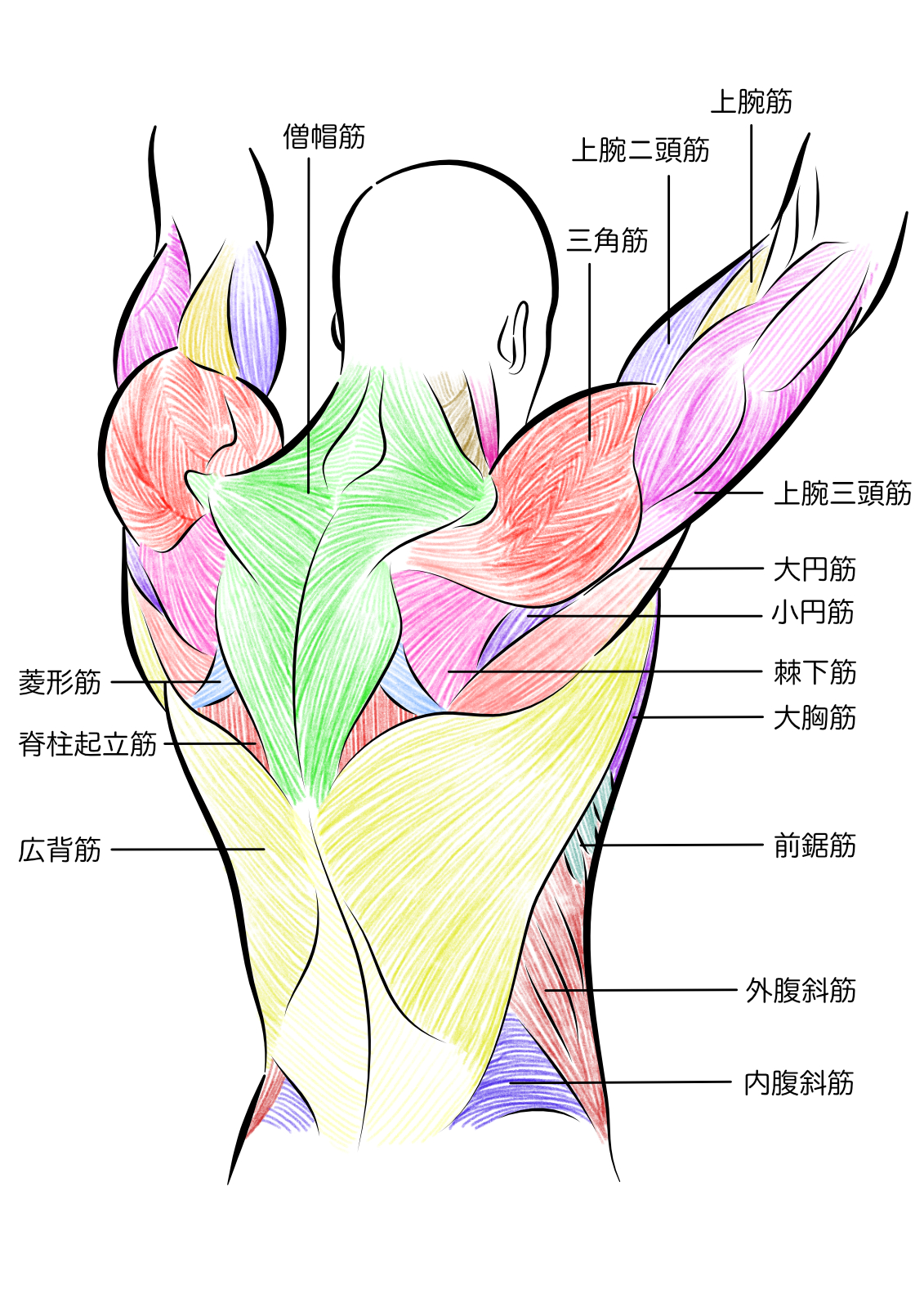 脇の奥や肩甲骨の外側に感じるこりや重さは、大円筋・小円筋からの大切なサインです。巻き肩や長時間のデスクワーク、スポーツの疲れだけでなく、ストレスや自律神経の乱れも深く関わっています。